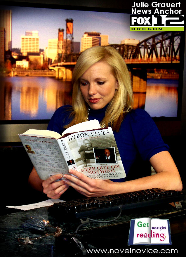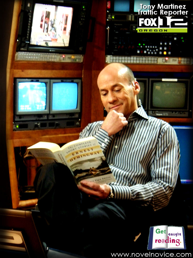 As we celebrate Get Caught Reading here at Novel Novice, I managed to wrangle a few of my on-air coworkers to get in on the act. Most of you know that I work at a TV station. Some of my anchors/on-air talent were kind enough to join in the fun of “getting caught reading.” Thanks to Pete, Julie & Tony!