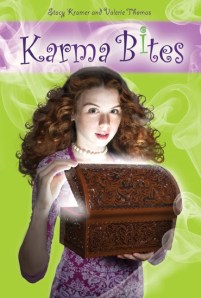 The idea for KARMA BITES came out of a very, very long lunch Valerie and I had shortly after Valerie returned from a year in Hawaii. I was feeling burned out from tv and movies and wanted to try writing something different. A television idea, a kid’s cooking show, for Nickelodeon, had ultimately not panned out after several months of work. We discussed the show, our mutual interest in cooking and our love of magical food movies like Chocolat and Like Water for Chocolate. The conversation enabled us to hit upon the idea for KARMA BITES. The story of a girl torn between two groups of friends but feeling a part of neither, who finds a magical recipe box in her grandmother’s closet. We loved the notion of placing real recipes throughout the book. And, after much discussion about our own middle school experiences, decided to make Franny a border crosser – a person who can move within various cliques with impunity – something we had both experienced in middle school. We also wanted to write a wacky comedy adventure, in the mold of FREAKY FRIDAY, CLUELESS or MEAN GIRLS. We liked the idea of taking these successful film paradigms and transferring them to a YA book.