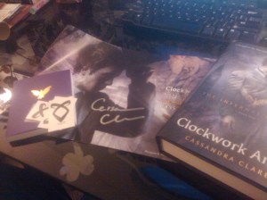 We’ve got another exciting contest for you guys this week — and the prize pack features a finished copy of Clockwork Angel by Cassandra Clare and assorted goodies, including a SIGNED poster!