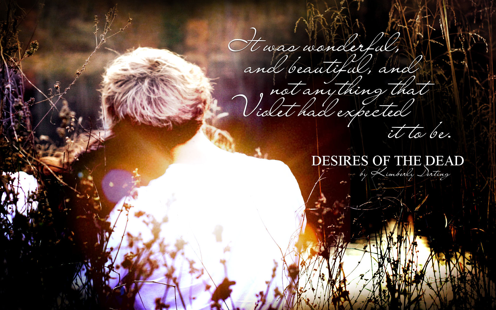 Today, we’re excited to share with you a batch of desktop wallpapers inspired by Desires of the Dead by Kimberly Derting. Many, many thanks to the wonderful Vania of VLC Productions for providing us with a couple of images from her recent photo shoot for Desires of the Dead (featuring Violet & Jay!), which we used in the first three of the following wallpapers!