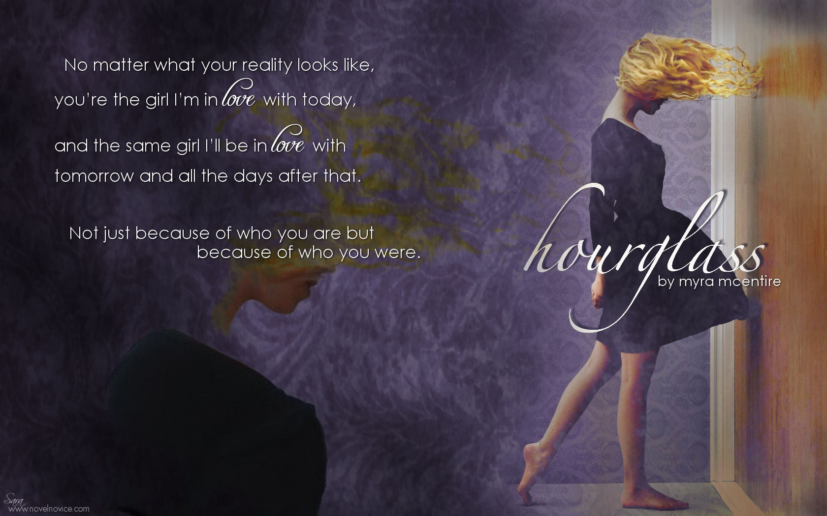 Hourglass author Myra McEntire adored our desktop wallpaper calendar we made for the June Book of the Month, so we’re betting she’ll also like these desktop wallpapers we made inspired by Hourglass. The wallpapers feature various quotes from the book (which Myra helped us choose), along with some photos that Myra graciously sent us for photoshopping. Thanks, Myra!
