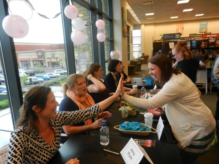 3. It was super awesome that I had a chance to meet you Sara! And the pictures turned out great. In the group picture, I was the one with the Jamba Juice haha. I hope I’d see you at more book events 🙂