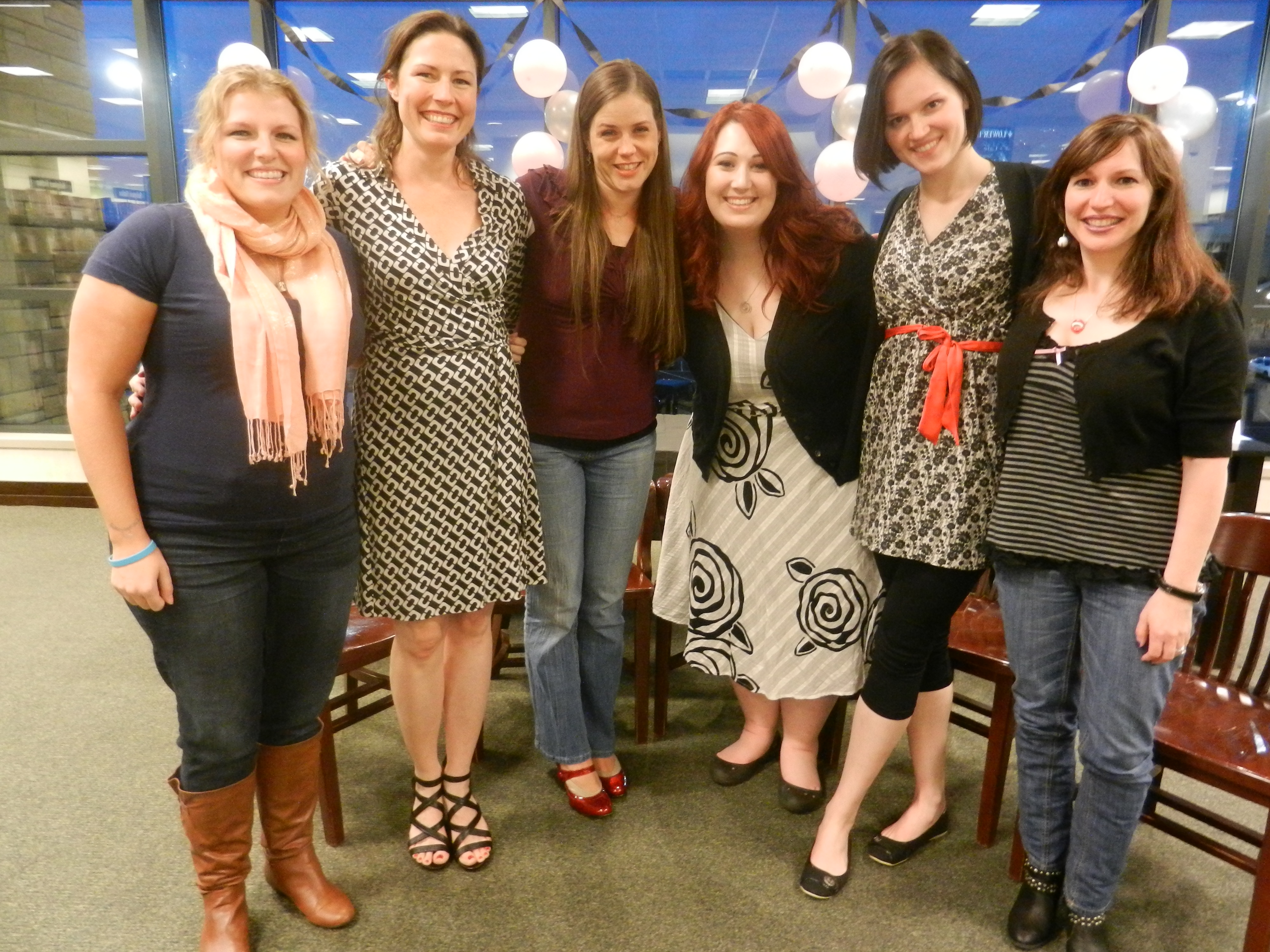 From left to right: Tara Hudson, Amy Plum, Aprilynne Pike, Sara from Novel Novice, Veronica Roth, & Ellen Schreiber