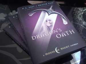 We were lucky enough to meet House of Night author P.C. Cast last year when she swung through Oregon, and since then she’s kept in touch. Earlier this year, she needed a small favor from us — and in exchange, P.C. sent us three copies of the new House of Night novella, Dragon’s Oath signed by both herself and daughter/co-author Kristin Cast.