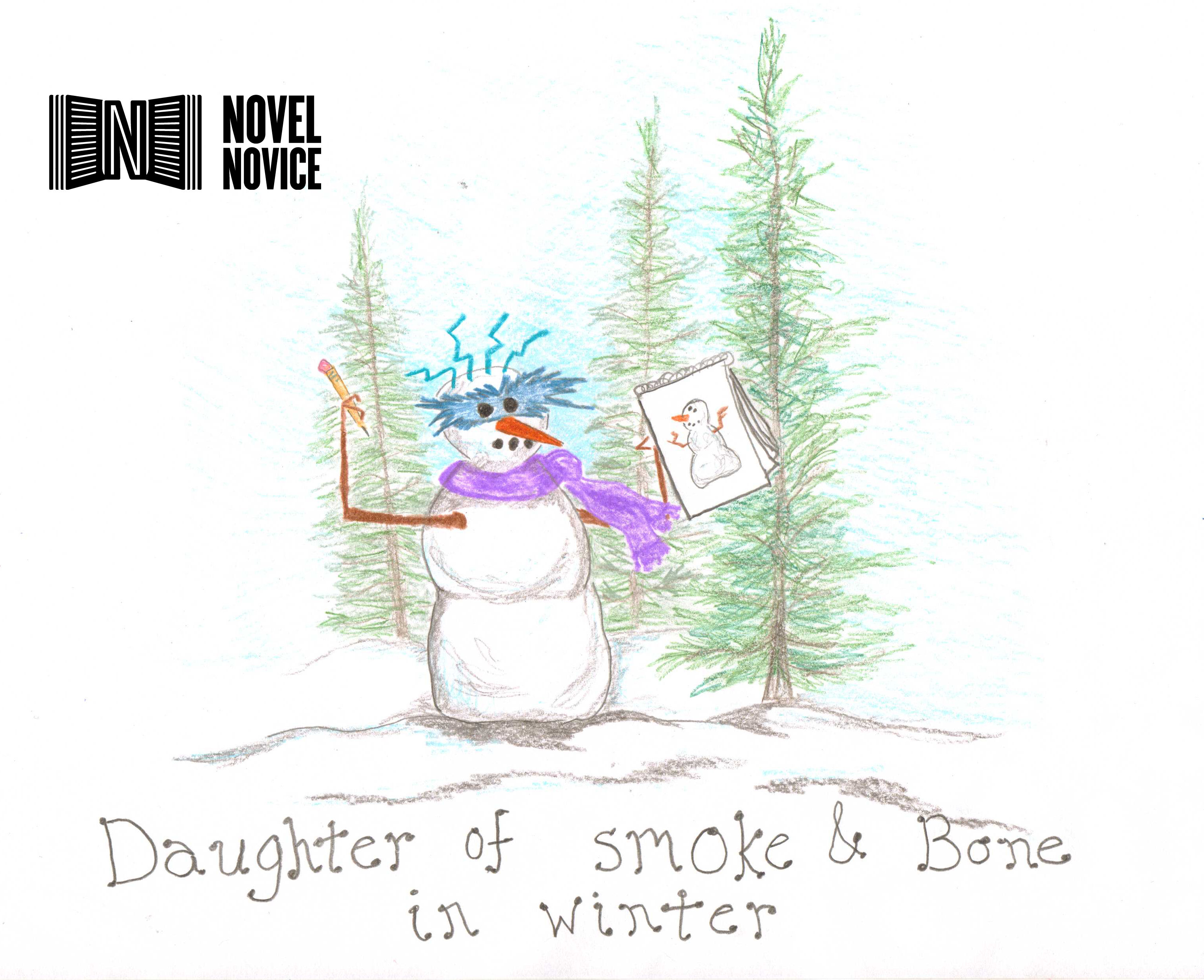 Today, we bring you two more YA books recreated as snowmen, in original art by my mom. Yesterday, we shared versions of Audition by Stasia Ward Kehoe and Beauty Queens by Libba Bray. On Monday, we featured A Need So Beautiful by Suzanne Young and Clockwork Prince by Cassandra Clare.