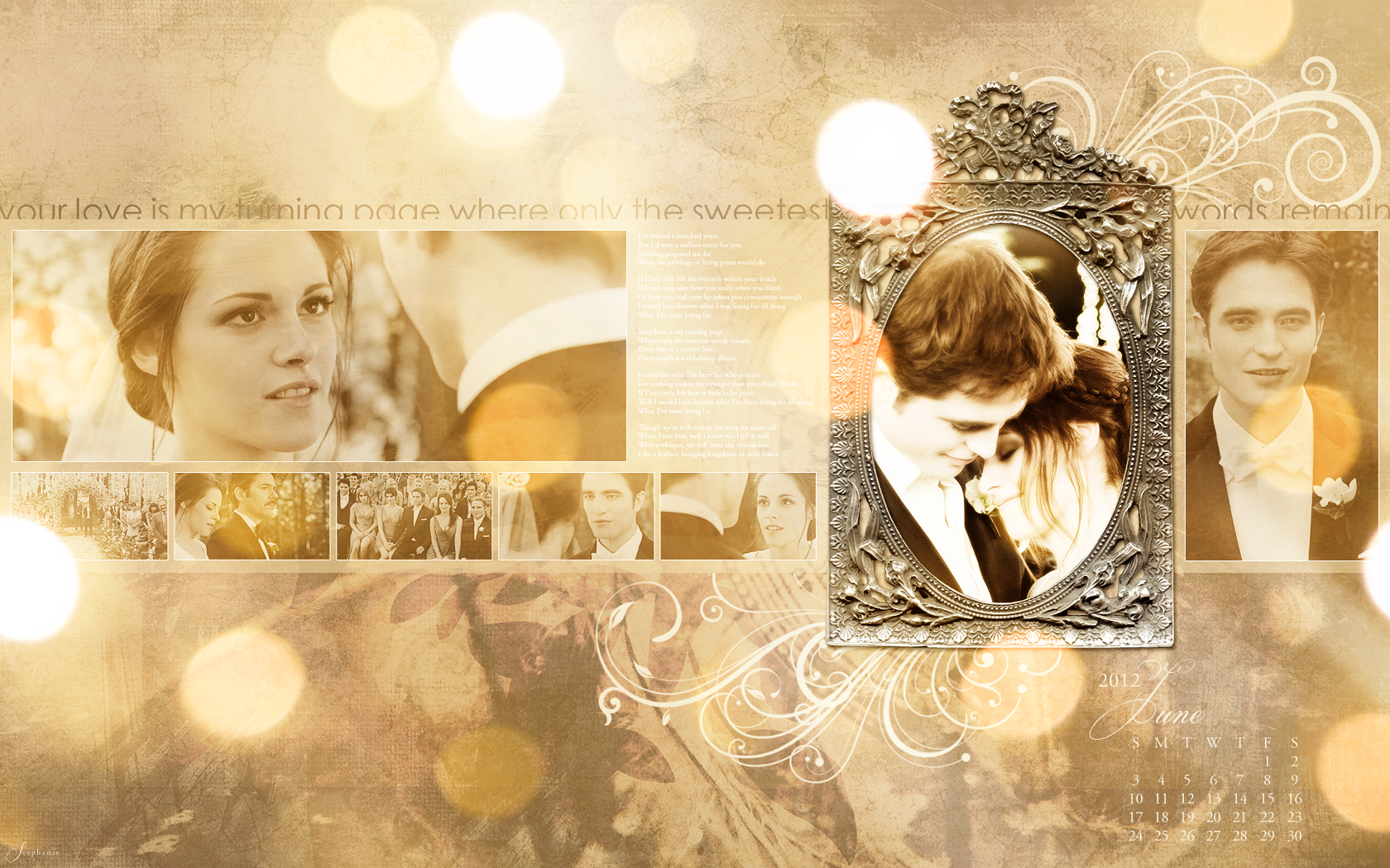 4. As a tradition, I’ve kept Twilight as my calendar/desktop for three years now (thanks to the calendars you’ve made). I was really looking forward to having an entire year of that again depicting Breaking Dawn Part 1 – will you be doing that? I see June and November here (they are great, so thank you for those), I was just curious if you were going to make calendar desktops for the entire year 2012 of Twilight Breaking Dawn Part 1 (and then of course finish it next year with Part 2)?