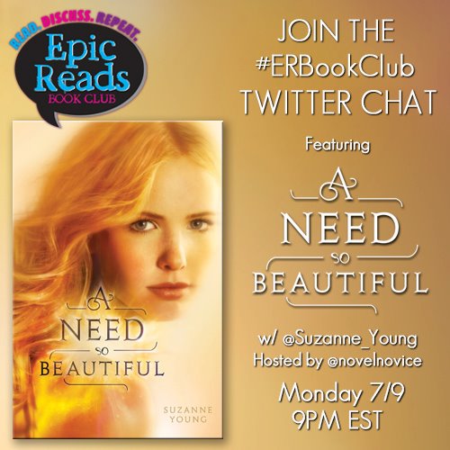 Tonight! We are thrilled to be hosting the Epic Reads #ERbookclub chat on Twitter with A Need So Beautifulauthor Suzanne Young.