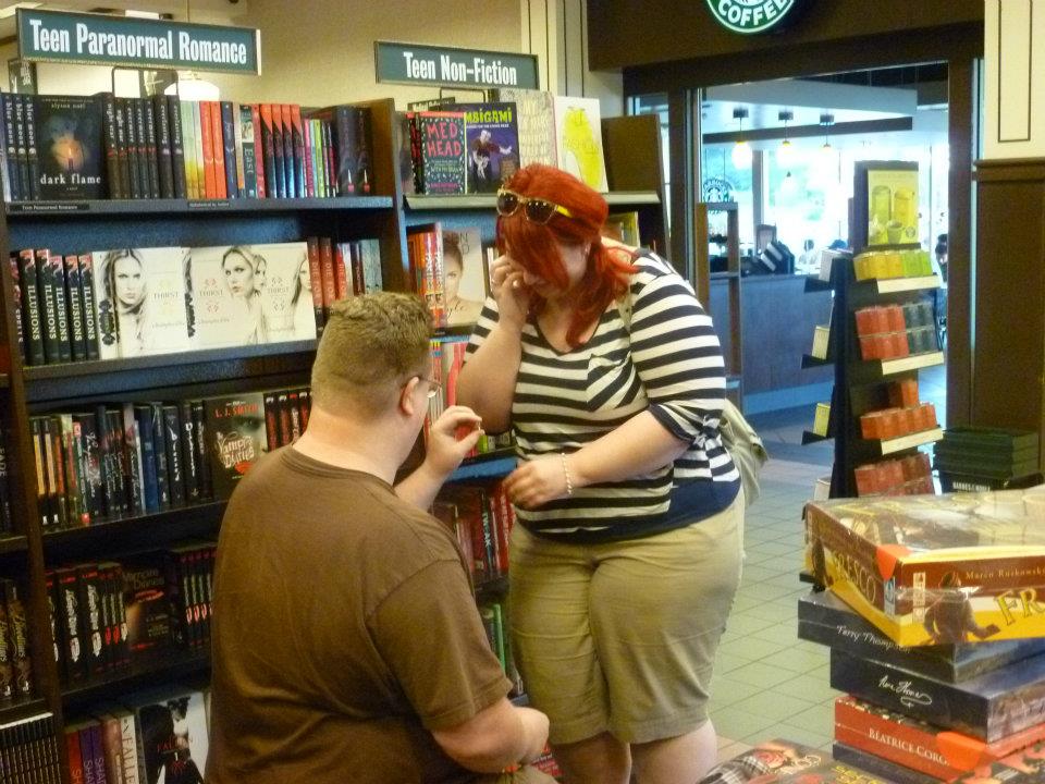 We arrived at the store & I marched straight back to the YA section to grab my book. Then I hear Derek call me from the other side of the shelves. “Hey, what about this book?”