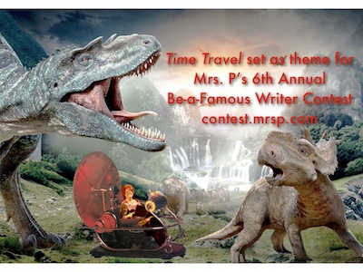 Today, Mrs. P stops by to talk with us about her 6th Annual Be-A-Famous Writer Contest, which is for K-4 classrooms. The winning classroom will be filled with books in every format from the contest’s generous sponsors. This year’s contest theme is Time Travel.