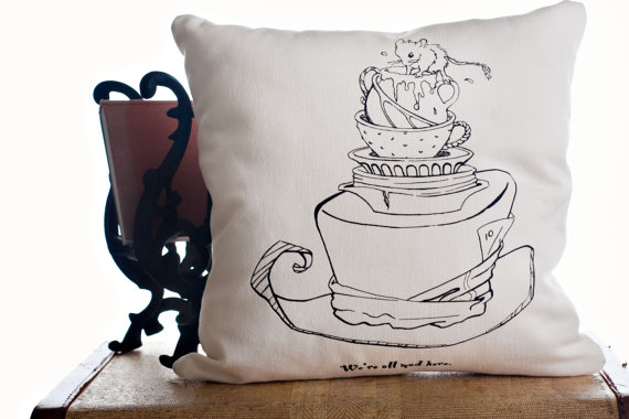 Storiarts offers a variety of designs from assorted authors, so there’s sure to be soemthing to suite everyone’s tastes. Beyond the scarves, also check out the coordinating fingerless gloves, headbands, and throw pillows. Here’s a peek at some of the goodies: