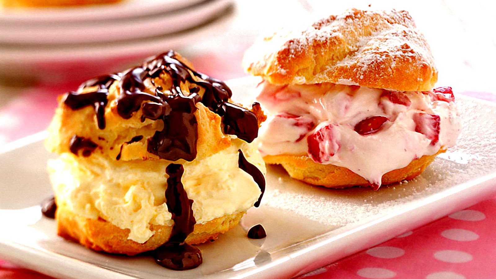 This is another puff pastry, which is filled with whipped cream, or a flavored custard, and then covered in icing.