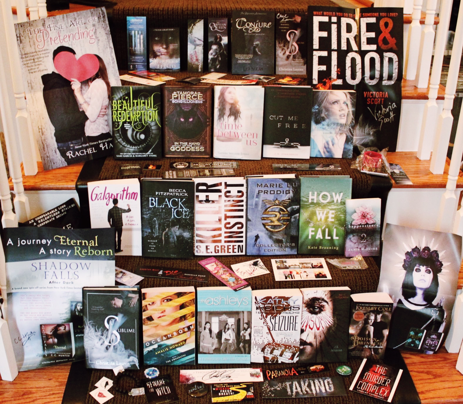 To gear up for Teen Day at RT (Romantic Times Booklovers Convention) in Dallas, on Saturday, May 16th, I have a huge Teen Day prize pack to give away! One lucky winner will win everything you see in the photo above. This prize pack features over 19 books, signed bookmarks and posters, ARC (Advanced Reader Copies) & a ton of swag! Most of the books are signed by the authors. US entrees only.
