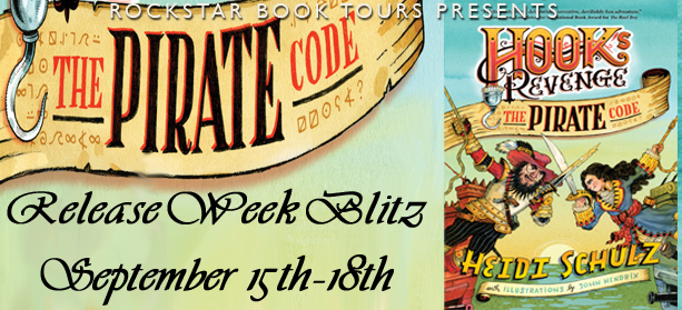 I’m a little late posting this, but TODAY marks the exciting release of Hooke’s Revenge: The Pirate Code by Heidi Schulz, the swashbuckling sequel to Hook’s Revenge, which sees the daughter of Captain Hook taking up her father’s mantel. Er, sort of.
