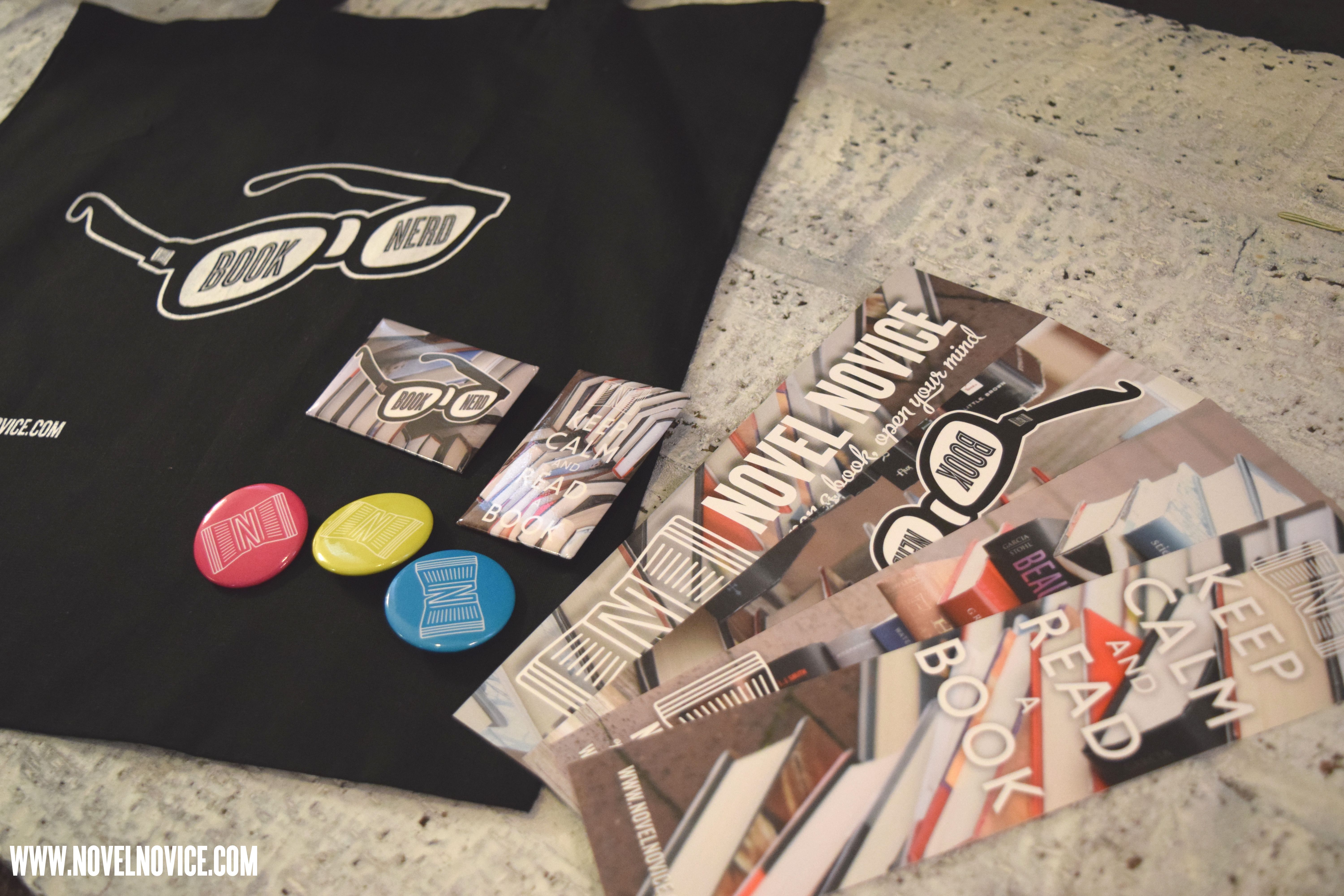 Three runners-up will each receive a Novel Novice “Book Nerd” tote bag, bookmarks, and buttons.