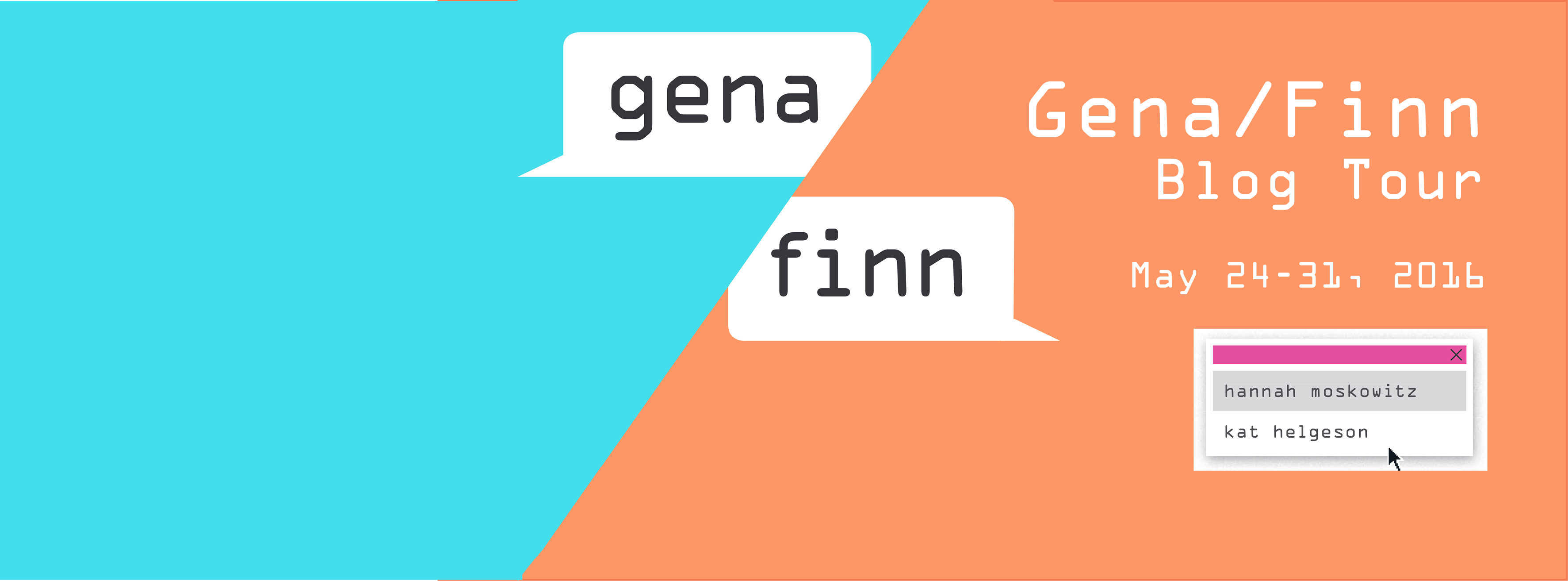 I’m excited to host a stop today on the official blog tour for Gena/Finn by Hannah Moskowitz & Kat Helgeson, a cool new book about online friendships and what they mean to us IRL. (That’s “in real life,” for the uninitiated.)