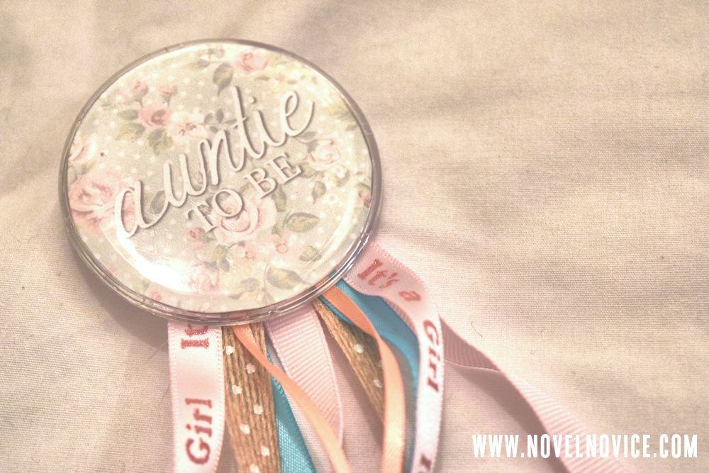 This is my button from my sister-in-law’s bridal shower last summer. I was SO excited to become an auntie — and almost a year later, I love actually BEING an auntie.