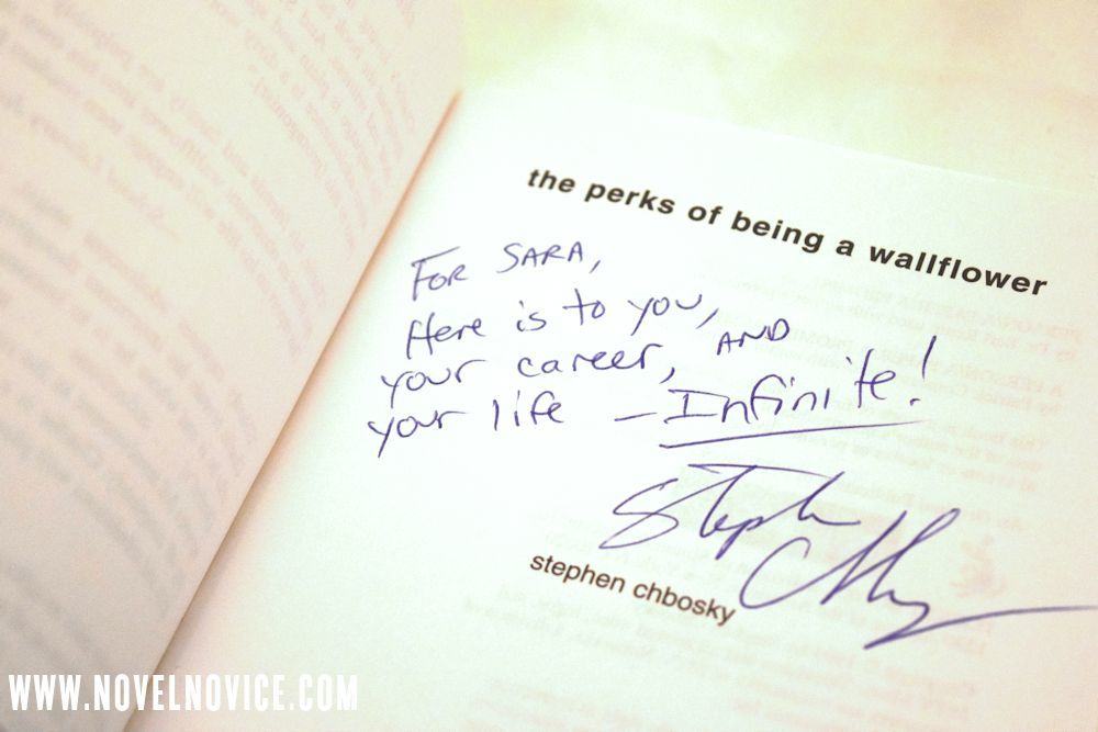 These are the inscriptions on my two most prized books — signed copies of The Golden Compass by Philip Pullman (I was in 7th grade when I met him and had this book signed), and The Perks of Being a Wallflower by Stephen Chbosky. I was actually visiting the set of the Perks movie adaptation and interviewing the cast when I met Stephen Chbosky, and had the chance to interview him. We weren’t supposed to ask for autographs, but he saw my book — and I’d already gushed to him about how much his book changed my life and how much it has meant to me ever since I read it for the first time when I was 16 years old — and offered to sign it for me. Of course I said yes. Incredible experience.